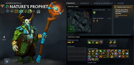 Right after you pick your hero, you will see the “Starting Items” menu. Your starting gold is 600, and all items you can get for that price will be listed there. Just right-click the item you want to buy, and it will be added to your inventory as the match starts.